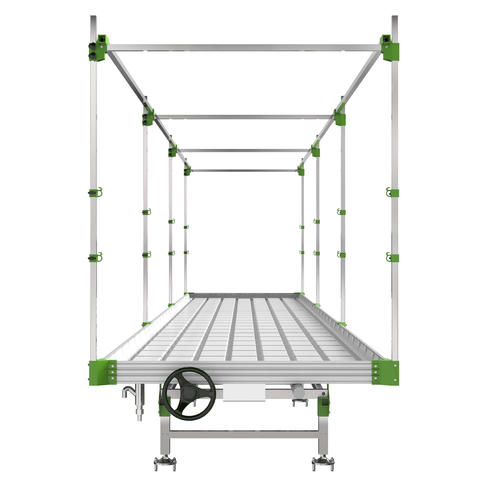 Mit ihrer stabilen Aluminium-/Stahlkonstruktion, höhenverstellbaren Füßen und optionalen Rollen bietet sie maximale Stabilität und Flexibilität – ideal für Hydroponik-, RDWC- oder Erdanbau-Systeme.