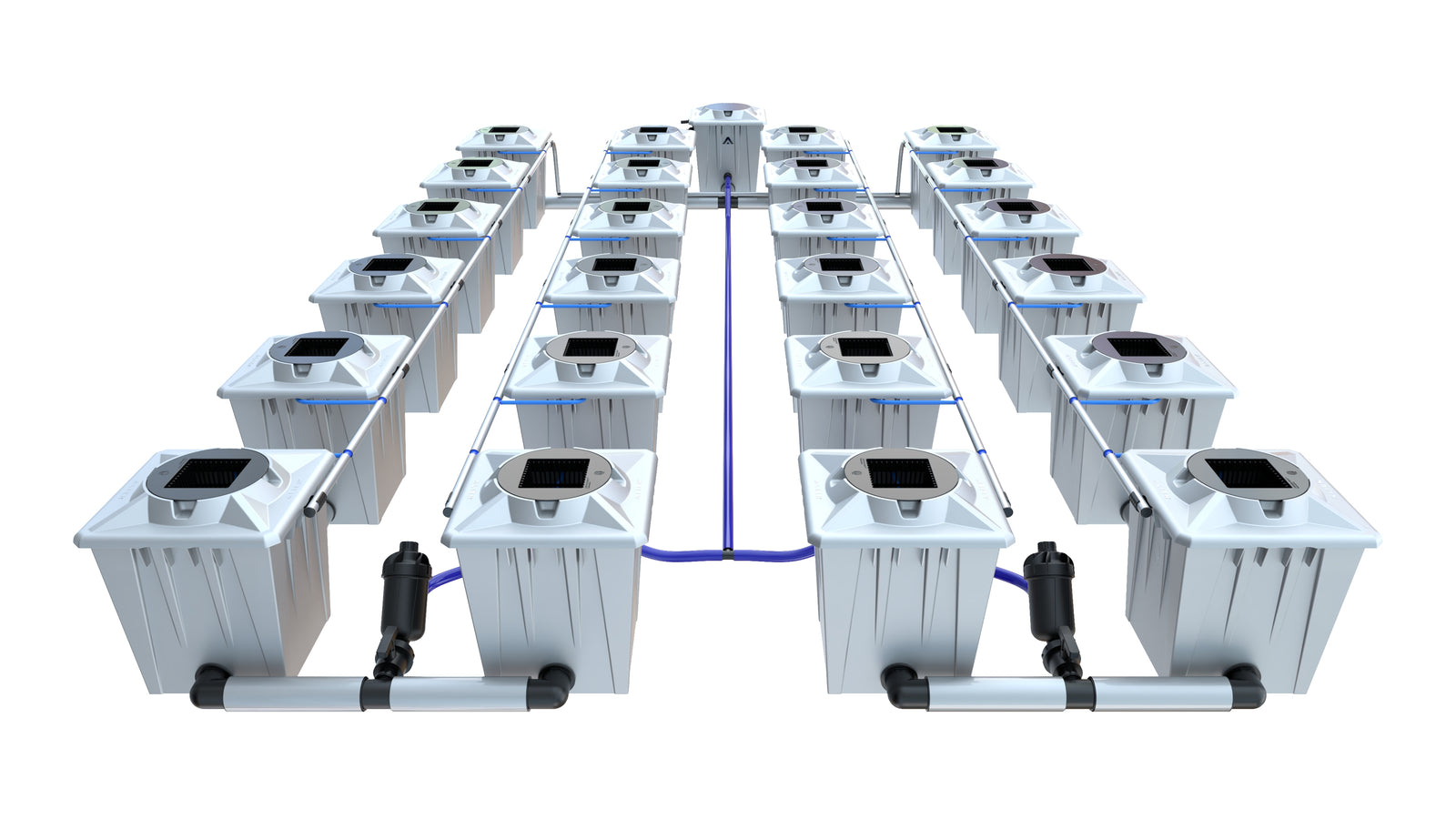 Mit 24 × 20-Liter-Töpfen, dem riesigen 50 mm Dual-Flow™-Rohrsystem, A.I.R.-Ringen und reflektierender Silver-Polymer-Technologie bietet dieses System absolute Spitzenleistung im RDWC-Bereich.