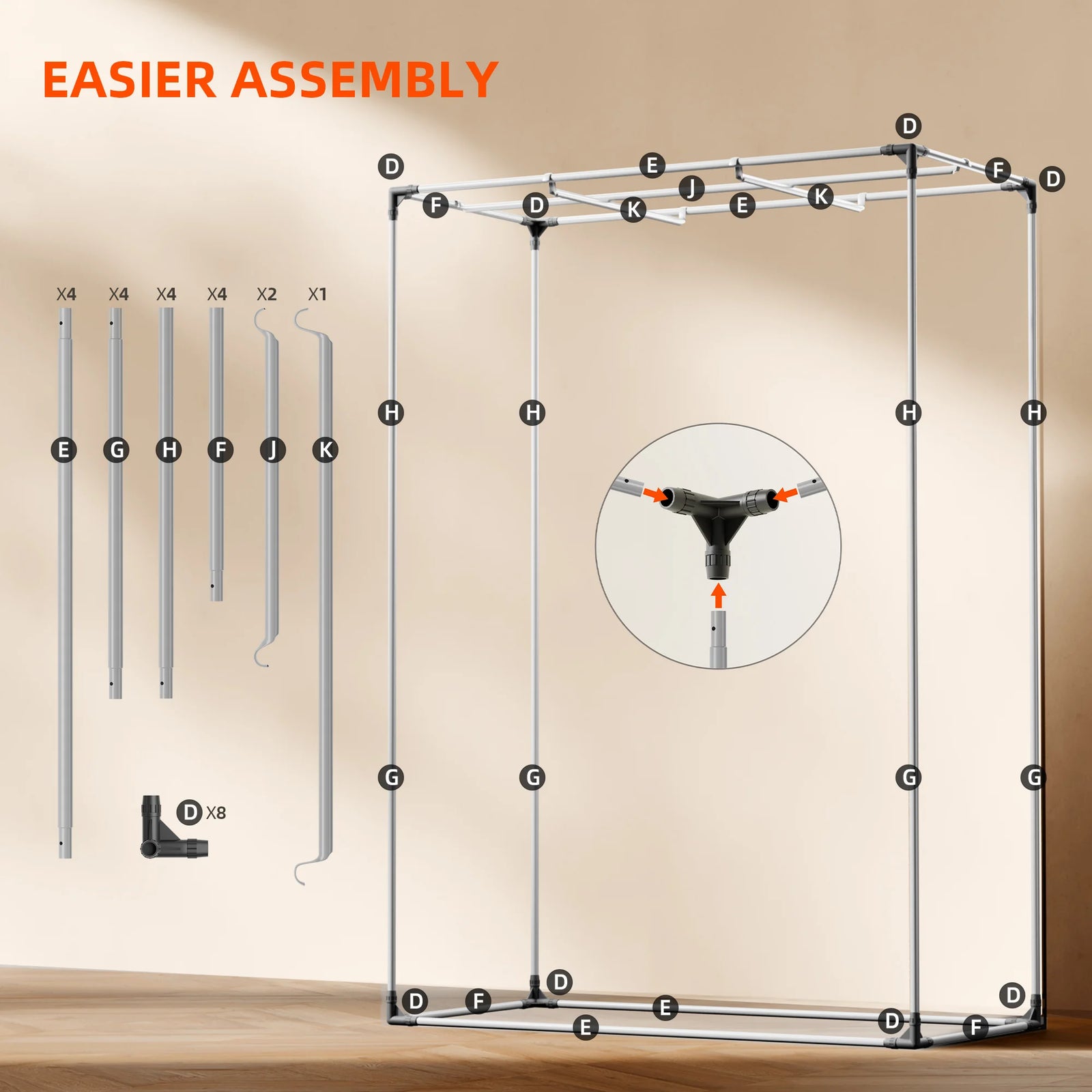 • Tragfähiges Metallgestänge für Lüfter, Filter & LED-Growlampen